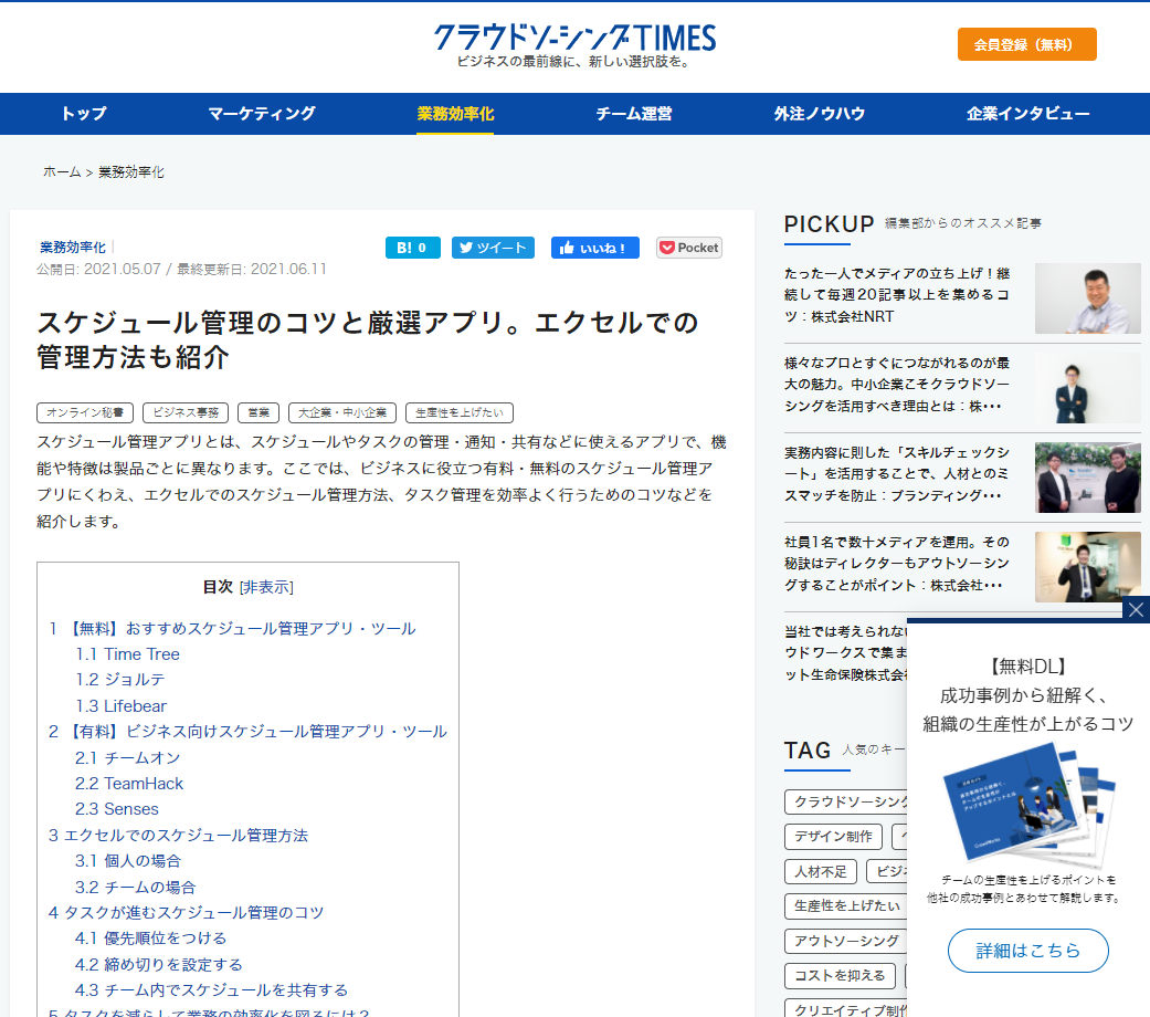 クラウドソーシングTIMESにて「スケジュール管理のコツと厳選アプリ。エクセルでの管理方法も紹介」TeamOnが紹介されました。