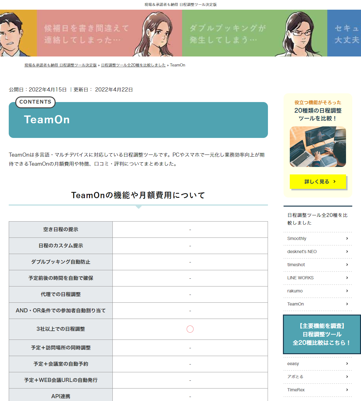 現場&承認者も納得 日程調整ツール決定版にて「TeamOnが紹介されました。