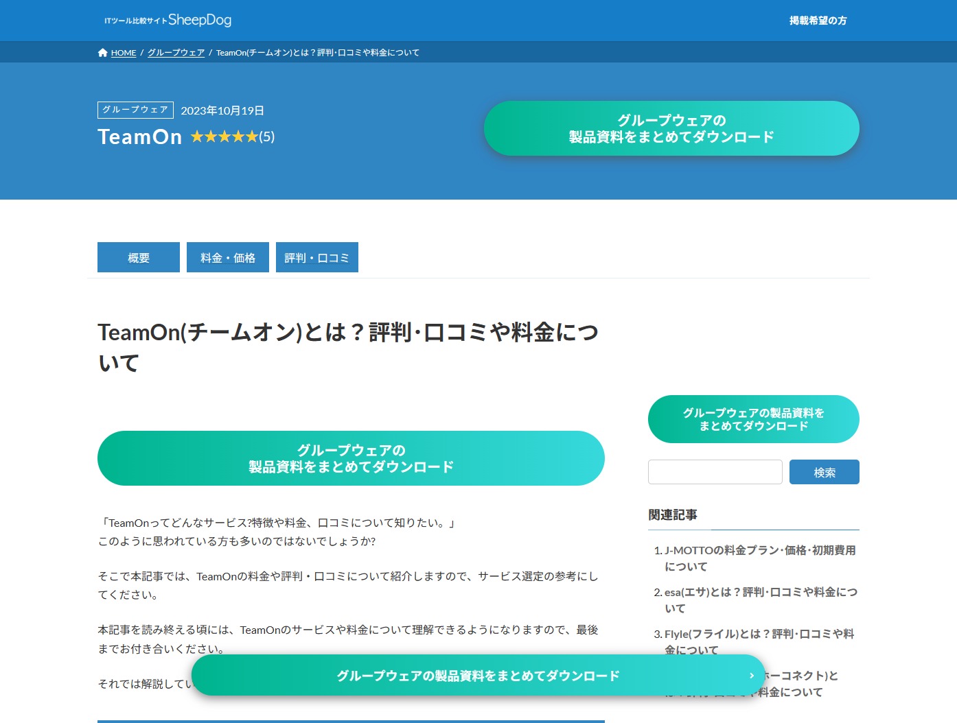 ITツール比較サイト「SheepDog」にて「TeamOnが紹介されました。