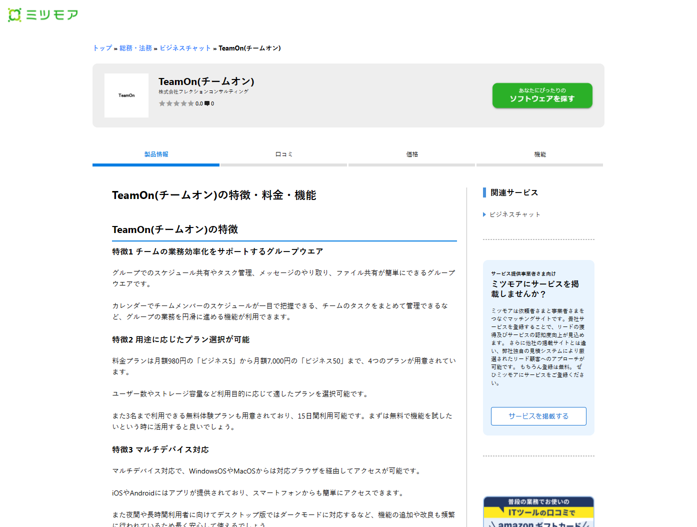 FreesoftConciergeにて「「TeamOn」直感的に操作しやすいグループウェア」TeamOnが紹介されました。